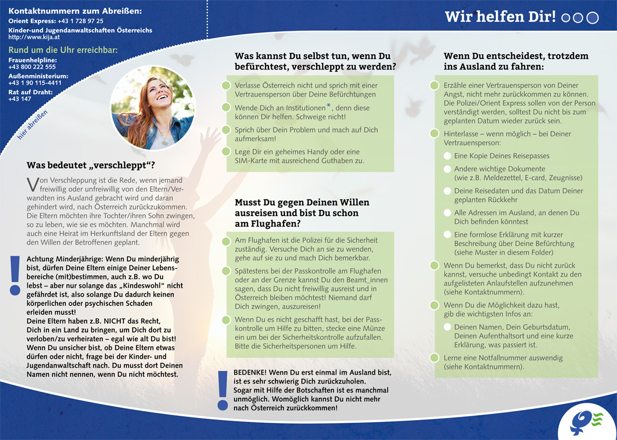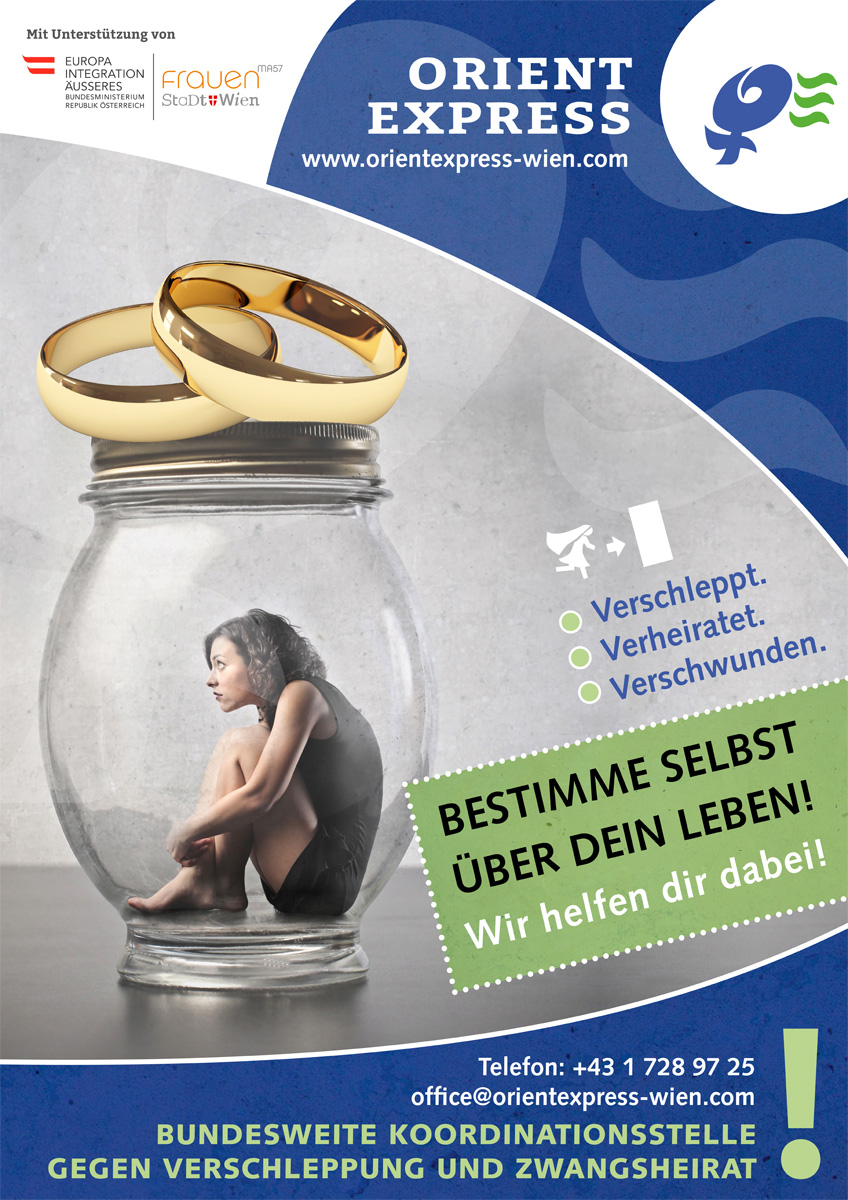 Auch mehr als zehn Jahre später setzt sich der Verein für Frauen ein und wurde 2017 zur österreichweiten Koordniationsstelle gegen Verschleppung und Zwangsheirat. Auch dieses Projekt durfte ich wieder begleiten. Gemeinsam mit der Grafikerin Sarah Maria Seidel schufen wir ein Plakat, einen Leitfaden für Helfer_innen und einen Folder für Hilfesuchende.